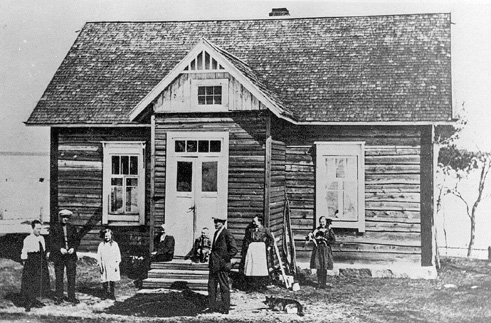 Adam Hämäläisen talo 1922. Henkilöt: Edla Kurki (s. Hämäläinen), Jalmari Kurki, Helmi, Helena (Aatun äiti), Martti, Aatu, Miina, ja Mirja Hämäläinen