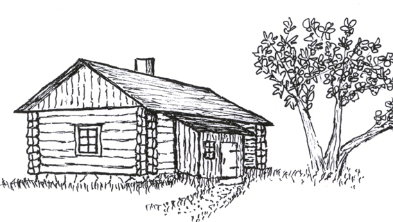 Asumus on pieni, harmaa yksihuoneinen hirsirakennus lohenpyrstönurkkineen. Pihapuuna on kolmihaarainen