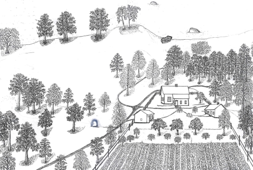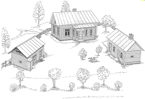 Tytär Hiljan piirros kodistaan Koivistolla