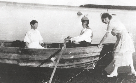 Perämies-Mikko ja Karoliina Kirppu sekä Mary West (Mikon pojan Emilin vaimo) lähdössä kyläilemään.