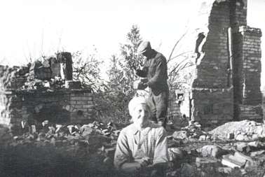 Simo ja Liisa talonsa raunioilla 1942