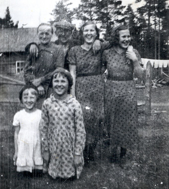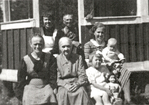 Laakson perhe Josefiina ja Anton Kurjen pihalla 30-luvun alkupuolella. Olga, Anton, Irja ja