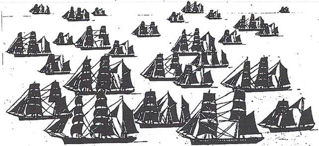 Tällaiselta näytti 1870-1880 lukujen Koiviston syvänmeren laivasto. Kymmenkunta kuunaria,