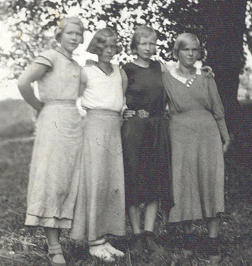 Elvi Vartiala s. 1915, Helmi Hämäläinen 1911, Hilja Karvanen 1913 ja Sohvi K ?.