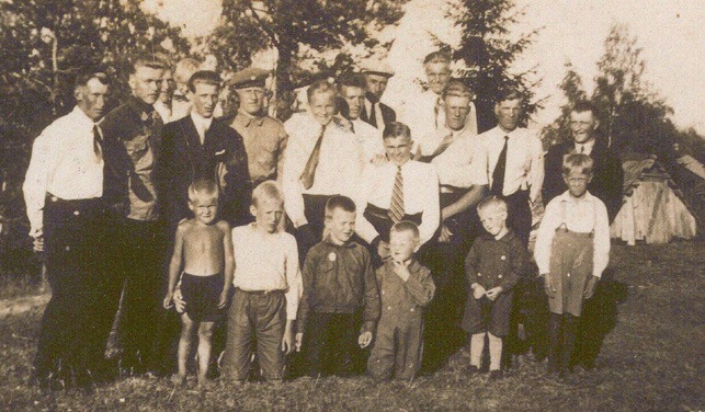 1.Eino Kurki, 2.Aaalto Kurki. 3.?, 4.?, 5.Sulo Hanttu, 6.Eino Hanttu, 7.Väinö Kurki, 8.Urpo Kurki, 9.Toivo Ylä-Outinen,